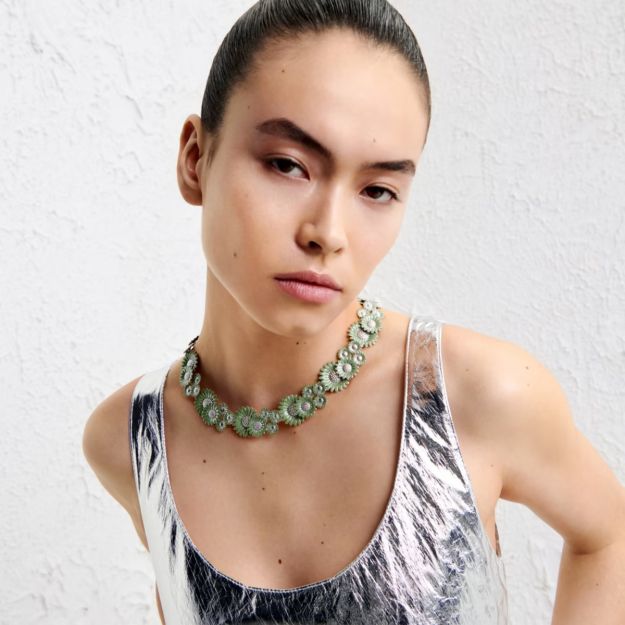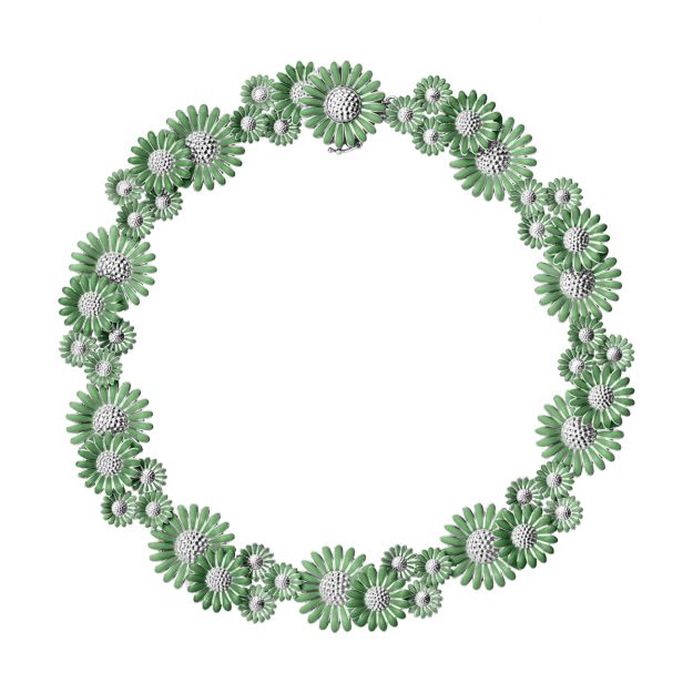 Κολιέ Daisy από ασήμι με ρόδιο και Πράσινο Σμάλτο