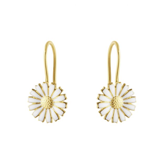 Κρεμαστά Σκουλαρίκια Daisy από ασήμι με ρόδιο και Λευκό Σμάλτο 11mm