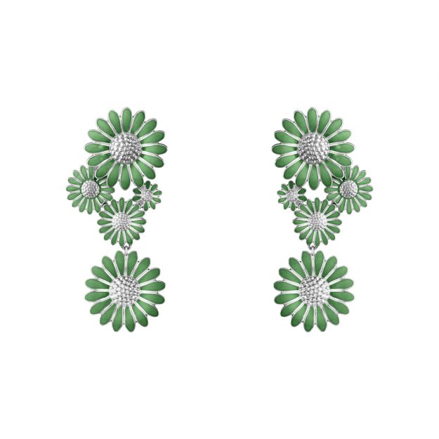 Σκουλαρίκια Daisy Μεγάλα από ασήμι με ρόδιο και Πράσινο Σμάλτο